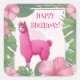Pink Happy Lama lächeln Quadratischer Aufkleber