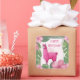Dieses niedliche und ansprechende Pink Happy Lama, umgeben von grünen Palmen und tropischen Blume, ist von einem hübschen Lama umgeben.
