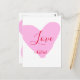 Pink heart love happy Valentine's day text red nam Postkarte