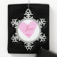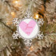 Pink heart love happy Valentine's day text red nam Schneeflocken Zinn-Ornament