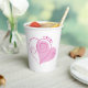 Maßgeschneiderte Papiertassen mit rosa Herzen. Ändern Sie die Hintergrundfarbe nach Ihren Wünschen. Ideal für Party, Jubiläen, Hochzeiten, Brautpartys,