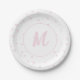 Pink Heart Pattern Girly Romantic Mit Monogramm Pappteller