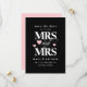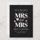Romantische Typografie Hochzeit speichern das Datum in schwarz für eine lesbische Hochzeit mit der künftigen MRS und MRS geschrieben in fett weißen Buchstaben mit einem Wirblen und, und rosa Herzen. Typografie lesbische Save the Date Karte mit Save the Date für die Zukunft Mrs & Mrs. in einem schwarzen, rosa und weiß Design in einem sauberen und dennoch romantischen Design. Senden Sie Ihre Daten speichern mit dieser Schwarz, Rosa und Weiß lesbischen Hochzeit speichern Sie die mit Ihren Namen und Hochzeitsdetails personalisierte Datumskarte, aber ohne Foto.