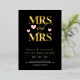 Romantische Typografie Hochzeitseinladung in schwarz für eine lesbische Hochzeit mit MRS und MRS geschrieben in fett goldenen Briefe mit einem Wirblen und, und rosa Herzen. Fügen Sie Details über Ihre Hochzeit auf den Rücken.