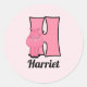 Pink Hippo Mit Monogramm Buchstabe H mit Name Runder Aufkleber