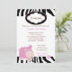Pink Hippo Zebra Stripe Kinderdusche Einladung 12x