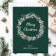Diese lustige und festliche Aquarellweih-Weihnachtskarte kann mit einem Namen oder Titel personalisiert werden. Der Weihnachtskranz in Aquarellen mit rosa Heiligen und Beeren auf dunkelgrünem Hintergrund. Der Text kombiniert handgeschriebene Skripte mit modernen Serif-Schriftart für ein elegantes und raffiniertes Aussehen.