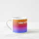 Ein Farbverlauf mit gelben, orangefarbenen, rosa, lila, blauen Schichten mit dem Schwerpunkt auf der fett rosa Schicht. Der Text ist anpassbar und liest derzeit "Make My Morning Great Again". Der anpassbare Text kann bei Bedarf vom Kunden geändert werden.