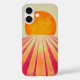 Eine strahlende Sonne über rosa Strahlen - sanfte Wärme trifft auf Retro-Ruhe.