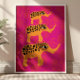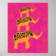 Gelbe Elefanten mit Horus-Auge, auf dem heißen rosa Hintergrund. Ein wunderschönes böhmisches Plakat, das Farbe und Freude in Ihr Leben bringt.