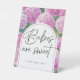 Pink Hydrangea Babys Sweet Baby Shower Pedestal Schild. Matching-Elemente verfügbar.