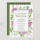 Diese rosa Hydrangea-Duscheinladung ist ideal, um Ihre Braut zu ihrem hübschen Bräutigam mit Familie und Freunden zu feiern - vor allem, wenn sich alle über das ganze Land oder die Welt verteilen. Die Wasserfarbe Rosa Hydrangeas und die weiße Vegetation. Es ist romantisch und modern zugleich klassisch. Es hat einen koordinierenden grünen Streifen zurück.