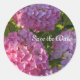 Schöne rosa Hydrangeas mit Sonnenschein beleuchten diesen Save the Date Aufkleber für Ihren besonderen Tag!