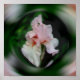 Feine, blassrosa, bärtige Iris-Blume mit wirbelnden Aura-Energien abstrakte Blumenkunst.