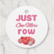 Playful knitting quote design featuring “Just One More Row” in chunky pink knit-style letters above a pile of pink and red yarn balls with knitting needles. Perfect for passionate knitters, crocheters, and yarn lovers who can never stop stitching. Great for cozy crafting vibes on everyday items.