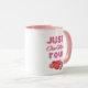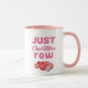 Playful knitting quote design featuring “Just One More Row” in chunky pink knit-style letters above a pile of pink and red yarn balls with knitting needles. Perfect for passionate knitters, crocheters, and yarn lovers who can never stop stitching. Great for cozy crafting vibes on everyday items.