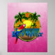 Key West Florida, der südlichste Punkt in den Vereinigten Staaten. Sonnenuntergang mit Palmen, runder Bambusrahmen und farbenfroher Papagei.