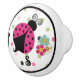 Personalize these entzückende Drawer Knobs With a monogram for a baby nursery or child's room. In pink ladybug sits haben wir polka dot background accented with whimsical little flowers. Cute and colorful.