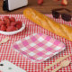 Moderne rosa Gingham Party Produkte. Rosa Gingham Party Dekoration und Zubehör.