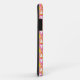 Dieses Gehäuse hat ein geometrisches Design, das rosa und orange Dreiecke wiederholt, mit gelben Kreisen oben auf einem Feld von weißlich. Das gleiche Design in verschiedenen Farben gewollt? Nachricht.