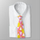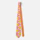 Diese Krawatte hat ein geometrisches Design aus sich wiederholenden rosa und orangen Dreiecken mit gelben Kreisen oben auf einem Feld von weißlich. Das gleiche Design in verschiedenen Farben gewollt? Nachricht.