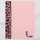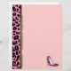 Whimsikale und hübsche Personal- oder Geschäftsletterkopie in blassrosa, mit rosa und schwarz gepunktetem Leopardendruck, der auf der links Seite des Papiers abgebildet ist. Ein goldener Ton und schwarzer Streifen grenzen an den Leopardendruck und die Grafik des rosa Leopardendruckstiletto Heelse, dekorieren die untere rechte Ecke der Schreibwaren. Kleiner schwarzer Text läuft vertikal entlang des Streifen. Personalisieren Sie den Text für sich oder Ihr Unternehmen.