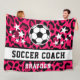Pink Leopard Print Soccer Coach Name Fleece Decke