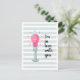 Valentinstag Postkarte mit Glühbirne und Streifen Illustration, und Text "Ich bin in Liebe mit Ihnen". Pastellminze und rosa Farben.