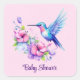 Pink & Lila Hummingbird Floral Girl Babydusche Quadratischer Aufkleber