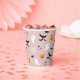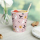 Niedliche Papiertücher mit keuchenden Halloweenwirten, Kürbissen, Spinnweben und Fledermäusen vor einer sanften, rosa Kulisse.