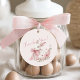 These elegant favor tags feature a soft bunny illustration, delicate florals, and a romantic pink bow detail.
