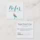 Diese ausgeklügelten Referenzkarten dienen dazu, Ihre Massagetherapie-Praxis zu verbessern. Die saubere, moderne Ästhetik verwendet ein minimalistisches Design mit einer Touch eleganter Schrift. Das subtile und berufliche Aussehen eignet sich hervorragend für das Vertrauen von Gebäude und die Anziehung anspruchsvoller Kunden. Diese Karte bietet einen überzeugenden Anreiz für Bewerbungen mit Platz, um den Referrer und den genannten Freund zu notieren. Geben Sie Ihre Kontaktinformationen und Ihr Rabattangebot (z.B. 30% Ermäßigung beim nächsten Besuch) ein, um die Kundenbindung zu maximieren.