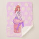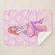 Ein niedliches Mädchen mit rosa und lila Kleid, das auf einem Haufen Makaronen sitzt!