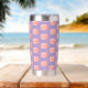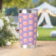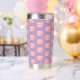 Sweet and delectable pink macarons elegantly displayed against a vibrant purple background.