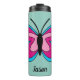 Pink Magenta Blue Butterfly | Text hinzufügen Thermosbecher