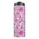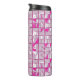 This thermal tumbler features a striking geometric block pattern in alternating shades of pink, magenta, and white, creating a dynamic, contemporary design with a subtle three‑dimensional effect.