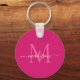 Pink Magenta White Monogram Name Modern Script Schlüsselanhänger