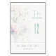 Kartennummer mit zarten Zweigen von rosa Magnolia auf strukturiertem Aquarellpapier, zartes Federplot. Aquarellbild Vintage, niedliche, rosa, florale Zweige mit sanften Blume, elegante Blumenzweige mit weichen rosa Blume, Frühlings- oder Sommerpastellfarben mit Blumenmotiven, ein romantisches, leicht frisches Bouquet. Botanische Wasserfarbe. Niedliche Blume Botany Hochzeitskarte Nummer. Rosa Magnolia Sammlung.