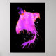 ein dekoratives Kunstwerk eines rosa Mantarochen auf schwarzem Hintergrund als farbenfroher Plakatdruck