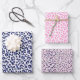 Das modische Papier für die Papierverpackung von Tieren ist in drei Leopardendruckstil, in Rosa und Marineblau bedruckt. Wählen Sie "Klicken, um weitere Anpassungen vorzunehmen", um die Mustergröße anzupassen.