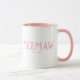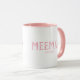 MeeMaw Kaffee Tasse Design mit einem rosafarbenen Schriftart Set auf weißem Hintergrund. Klicken Sie auf Anpassen, um die Hintergrundfarbe zu bearbeiten! Besuchen Sie unseren Shop, um diese Tasse in einer großen Auswahl von Großvaternamen zu sehen.