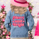 Lebhafte Pink Merry und Bright Weihnachten personalisierter Name Denim Jacke