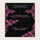 Elegante rosafarbene Wirbel mit Blumenspitze über schwarzen Blumendamenstrupps, gefaltete Visitenkarten-Vorlage. Für Veranstaltungsdesigner, Hochzeitsplaner