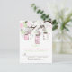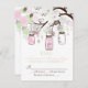 Pink und Mint Green Mason Jars UAWG Wedding Einladung Whimsikale Illustrationen von braunen, pinken, minzgrün Maurerkirschen, Blume und Herzenssaiten hängen an einem Baum mit zwei braunen Liebesvögeln umgeben von verschiedenen Pinks, minzgrün und braun Blume. Ideal für Hochzeiten im Sommer, Frühling und im Freien.
