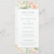 Elegante pastellrosa, pfirsichfarbene, aquamarine, blumengeschmückte Hochzeitskarten mit zarten Aquarellbeinen und schlichter minimalistischer Kalligraphie-Schrift in Minzfarbe. Ideal für botanische Gartenfeiern im Freien.