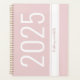 Personalisierter unbesetzter Planer in abgestuftem Jahrtausendrosa mit einfachem Streifen und großem Druckjahr und lustiger Pinselskriptname oder benutzerdefiniertes Thema oder Titel auf dem Cover gedruckt. Wählen Sie eine neue Hintergrundfarbe für die Vorder- und Rückseite aus, indem Sie auf "Weiter anpassen" klicken.
