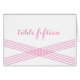 Einfache und elegante Modern Deko Wedding Tischnummer Card mit gestreiftem, kreuz-kreuz gestreiftem Deko-Design in Rosa. Diese klassische Tischkarte kann einfach mit Ihren Hochzeitsdetails angepasst werden. Klicken Sie für weitere Anpassungsoptionen auf die Schaltfläche Anpassen.