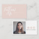 Verteilen Sie das Wort und fördern Sie Ihre soziale Medienpräsenz mit unserer Social Media und Foto Visitenkarte. Das Design zeichnet sich durch einen modernen minimalen Stil aus, wobei "folge mir" in einem stilvollen weißen Pinselskript angezeigt wird. Personalisieren Sie Ihre Daten mit dem Namen der Social Media und dem entsprechenden Benutzernamen/Handle der Social Media. Auf der Rückseite befindet sich ein großer Platzhalter für das Foto mit den Symbolen Facebook, Instagram und Twitter. Der weiße Hintergrund fügt ein modernes Aussehen hinzu, das Sie in jede beliebige Farbe ändern können, um der Farbe Ihrer Marke zu entsprechen. Original Layout und Design erstellt von Moodthology.