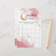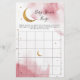 Über den Mond Thema Baby Dusche Karte. Mit dieser Bingo-Spielkarte können Sie sich bei Ihrer Babydusche amüsieren. Aquarellfarben pink mit Imitaten goldenen Mond und Sternen. Das Bingospiel frage den Gästen zu erraten, welche Geschenke die Mama-to-be erhalten wird. Original Illustration und Design von Namibear Art Studio.