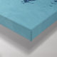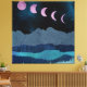 Diese wunderschöne abstrakte Landschaft zeigt eine nächtliche Bergszene mit einem kühnen rosa Mond, der in Phasen über dem Himmel gezeigt wird. Das Design ist in Blau, Zyan, Rosa und Grautönen gehalten.